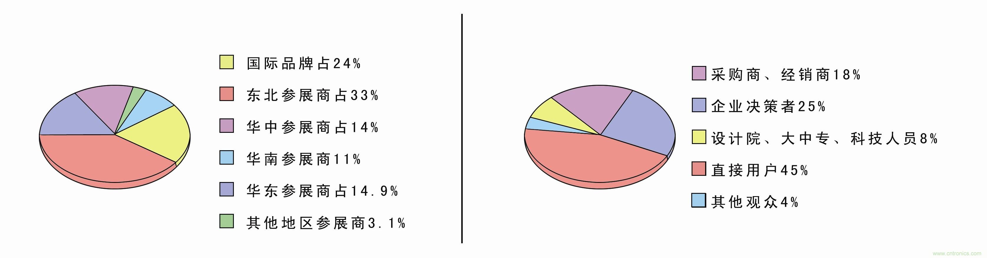 上屆展會于2012516-18日在大連星海會展中心舉行,展會規模已一萬多平方米,四百多個展位。世界知名的廠商:西門子、ABB、施耐德、三菱電機、奧托尼克斯、歐姆龍、LG、艾默生、寶帝、威圖、米思米、町洋機電、匯川等企業齊聚一堂,美國、日本、韓國等國外展團的大量參與,使展會更具吸引力;展會的觀眾主要來自東北、華北、華東、華中、西北、臺灣、香港及日本、韓國、俄羅斯等地,主要為相關行業的決策人士、技術人員及采購負責人。本屆展會為切合您的需求,直接面向專業買家、進出口商、分銷商、代理商和直接用戶,為您締造更多的商機!此次展會有參展商三百多家,參觀商兩萬人,其中各占比例如下:
