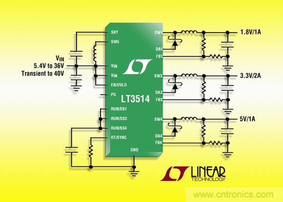【導讀】凌力爾特推出具100% 占空比操作能力的 36V 輸入電壓、三通道、2A + 1A + 1A (IOUT) 降壓型開關穩壓器LT3514。同時,它具備恒定頻率、堅固的抗短路性能等優勢,非常適用于需要多個輸出的汽車和工業應用。
