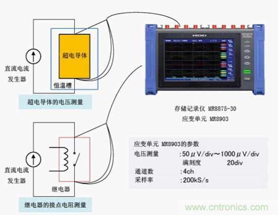 【導讀】升級后的日置存儲記錄儀MR8875-30應用實例,MR8875-30可長時間記錄外加在設備、超電導材料、接點的微小電壓波形的測量。此次實測案例的重點是記錄設備的特性評估、超電導材料的評估、接點的電壓下降(接點電阻測量)等μV等級的電壓。而且還需要同時測量溫度和其他電壓。