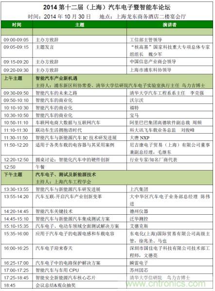 我愛方案網 (www.52solution.com)、電子元件技術網 (www.mengyueyun.cn) 攜手中國電子展、清華大學、上海市浦東新區科學技術協會、上海市汽車工程學會順應時勢,將在2014年10月30日共同主辦第十二屆(上海)汽車電子暨智能車論壇。論壇將集合全球智能汽車發展最前沿的科技,匯聚全球智能汽車行業最尖端的人才,推動汽車電子技術的跨界融合,打造中國第一個專注智能汽車的專業論壇。論壇將集合全球智能汽車與新能源汽車發展最前沿的科技,匯聚全球智能汽車與新能源汽車行業最尖端的人才,推動IT業與汽車業的進一步融合,促進工業產業鏈升級,帶動信息產業發展,為中國智能汽車和新能源汽車產業趕超國際一流貢獻綿薄之力!