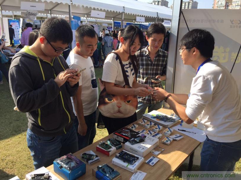 另外,云漢電子社區還帶來數十款頂級開發板,供現場前來參觀的各地創客們免費申請領用。活動一出,立即受到追捧一搶而空。在慕名而來的參觀者中,不乏熱衷手工的學生黨們,從剛入校門的小學生,到術有專攻的大學研究生們,都對云漢芯城的展示頗具興趣。不少愛好者表示,得知云漢電子社區能夠長期申請開發板,對于熱愛智能硬件的人來說,是個非常難得的機會。