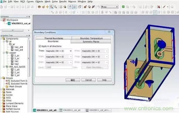 (4)將PCB上電流導入CST MWS或CST MS進行包含有機箱機殼等整個系統(tǒng)環(huán)境下的電磁輻射仿真;