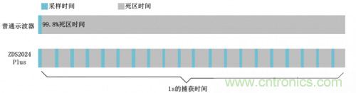 死區時間與波形刷新率息息有關,要減少死區時間,必須增大波形刷新率,ZDS2024 Plus示波器具有330Kwfm/s的波形刷新率,讓異常信號一覽無余,ZDS4054 Plus示波器具有1Mwfm/s的波形刷新率,可以更快更可靠的查找故障,縮短故障排查所需要的時間。