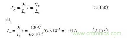 根據(jù)上面分析,以及圖2-55和圖2-56,正常工作時,流過高壓包初級線圈的最大電流Im不應(yīng)該超過極限電流值Imax的70%,由此,可以求得流過高壓包初級線圈的極限電流Imax為1.49 A 。