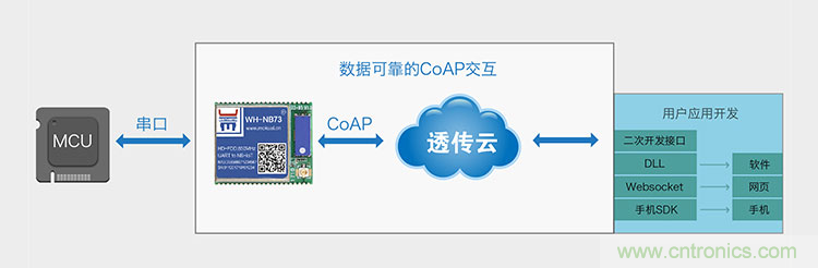 基于云服務的CoAP協議傳輸的特征是數據可靠,簡單易用。通過連接有人透傳云實現交互,透傳云會提供二次開發接口,供終端應用開發。