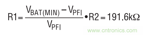 設計從設定 PFI 觸發電平開始。R2 被設定為 121k, R1 的阻值應把 PFI 引腳上的 PFI 觸發電平 (VPFI) 設定至1.2V,其計算公式如下: