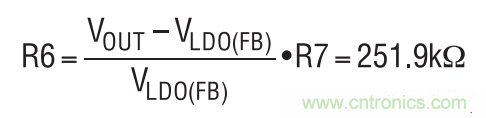 通過將 R7 設定為 80.6k,并計算 R6 阻值,把 LDO 后備模式輸出電壓設定為3.3V。VLDO(FB)為0.8V。