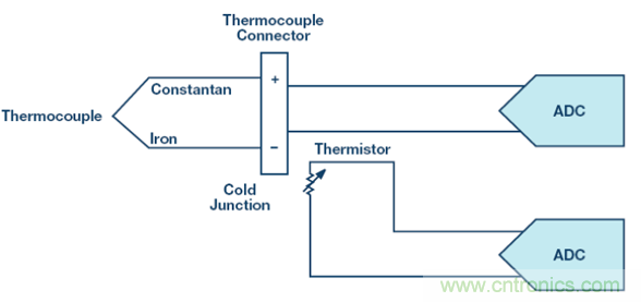 使容性 PGA 性能與阻性 PGA 相當(dāng)?shù)目尚修k法是以更高的電源電壓對(duì)電橋供電。比如,以±3.3 V 雙極性電源對(duì)電橋供電,從而增加應(yīng)變計(jì)的靈敏度,但代價(jià)是更高的系統(tǒng)復(fù)雜性和功耗。可能會(huì)得益于容性 PGA 的另一個(gè)例子是采用電阻式溫度檢測(cè)器(RTD)或熱電偶的溫度測(cè)量應(yīng)用。常用 RTD 電阻(比如 PT100)可以用來(lái)直接檢測(cè)溫度,或間接檢測(cè)熱電偶的冷結(jié),如圖 9 所示。