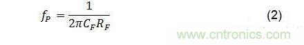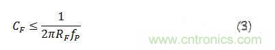 高于該極點頻率,電路的放大率便會降低。最大反饋電容器值可由反饋電阻器和所需帶寬確定: