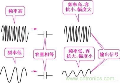 式中:π為常數(shù);f為交流信號的頻率,單位為Hz(赫茲);C為電容器的容量,單位為F(法拉)。