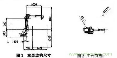 根據A II—V6L型工業機器人的主要參數進行設計。主要結構尺寸如圖I所示。機器人的工作范圍見圖2。