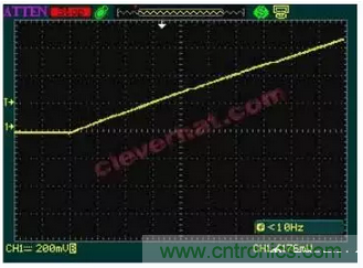 我們把掃描周期設置為1us每格,輸入靈敏度設為200mV每格,可以更清晰的看到電感電流上升初期的情況。