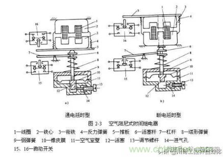 空氣阻尼是時間繼電器:主要的延時原理是利用氣囊式阻尼器,線圈得電以后,釋放或者吸合阻尼器,空氣通過微小孔緩慢進入,到達時間以后,實現接通斷開作用;