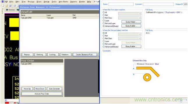 鋪好銅后,可以通過 Tools—Polygon Pours—Polygon Manager 來進行一些相應的鋪銅操作的處理。