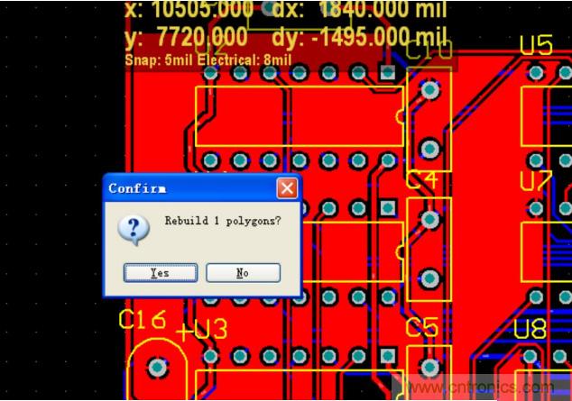 系統會提示你進行重新鋪銅,點擊 YES 。
