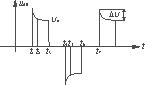 2)t2-t3時段    uAB="Uo",D12反偏截止。D1與D4導通,忽略D1與D4上的壓降,UEF=Uo。以E為電壓參考點,UF比UE電位低Uo,記作-Uo;由于UC=UEG=Uo+ΔUo,則UG比UE低Uo+ΔU,記作-(Uo+ΔU);這樣UFG=UF-UG=ΔU。