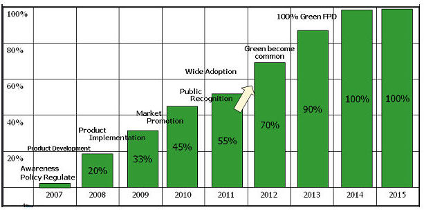 - 在2008年采用綠色環保技術或材料所生產的面板,預計在2012年將攀升至70%,并在2014年成為100%