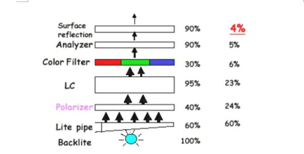 圖2:從背光源出發的光能的損失。