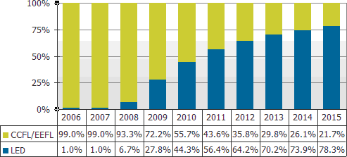 - 到了2015年,LED面板出貨量滲透率更將達到78%水準