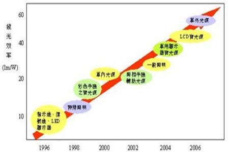 圖6 LED效能的提升速度