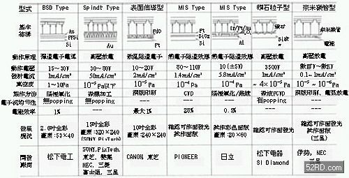 表1各種FED平面顯示器的動(dòng)作原理與特性