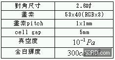 圖10表4分別是利率BSD技術(shù)制作之2.6吋彩色FED外觀圖與規(guī)格;由于BSD的電子發(fā)射源可在大cellgap環(huán)境下,以垂直方式在涂有螢光體的面板上產(chǎn)生圖樣(pattern),因此祇要驅(qū)動(dòng)電路與驅(qū)動(dòng)方式經(jīng)由最加化設(shè)計(jì),便可獲得令人滿意的影像顯示效果。