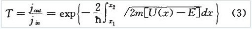 其中q為電子電量,m為電子質量,矗為普朗克常數,vx、vy、vz分別是電子在x、y、z方向的隧穿速度,T(x)為電子的隧穿概率。又任意勢壘的電子隧穿概率可表示為