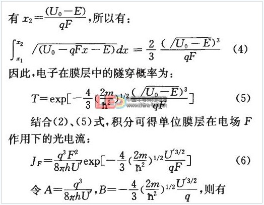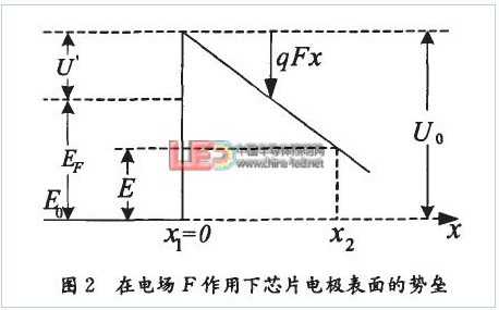 x指向為芯片電極表面到壓焊點,為膜層中z方向任意點的勢壘,E是垂直芯片電極表面速度為vx電子的能量。
