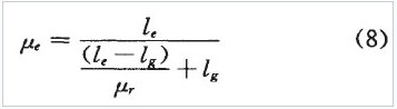 式中,μe磁芯的有效磁導率,脅為磁芯的相對磁導率,μr為磁芯的有效磁路長度,名為非閉合氣隙長度。