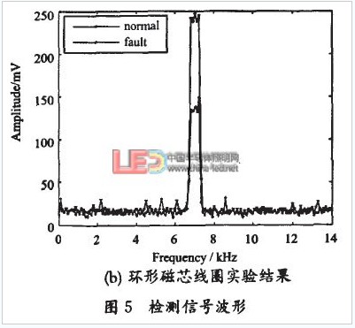 ⑤理論分析和實驗結果分析可得,該方法對LED支架回路電流具有較高的檢測精度,通過檢測支架回路電流激起的磁場在線圈兩端感生出電動勢的大小,并與焊接質量合格的LED的檢測信號進行比較,實現對封裝過程中存在封裝缺陷的LED進行檢測。