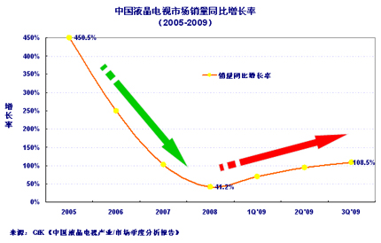 • 到2009年3季度,中國液晶電視市場銷量規模同比增長超過100%