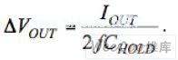 在第二階段,C1+連接到輸出,放電電流(電流大小與前面的充電電流相同)通過C1流到負載。在這個階段,輸出電容電流的變化大約為2IOUT。盡管這個電流變化應該能產生一個輸出電壓變化為2IOUTESRC_HOLD,使用低ESR的陶瓷電容使得這種變化可以忽略不計。此時,CHOLD按下面的電量線性電位充電︰