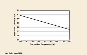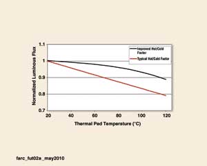 熱/冷因數的改善增加了LED的工作溫度范圍,讓照明設計師有機會在LED極限內的任何結溫下工作。