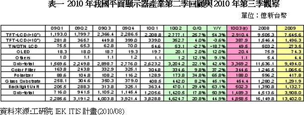 2010年第二季我國(guó)平面顯示器產(chǎn)業(yè)回顧與展望
