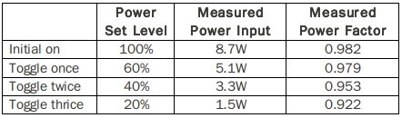 表三、EZDimming四段調(diào)光準(zhǔn)位的功因