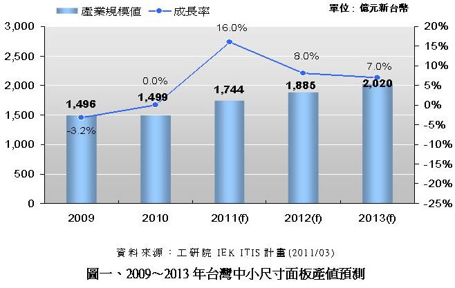- 2011年臺灣中小尺寸面板產值將大幅成長16%