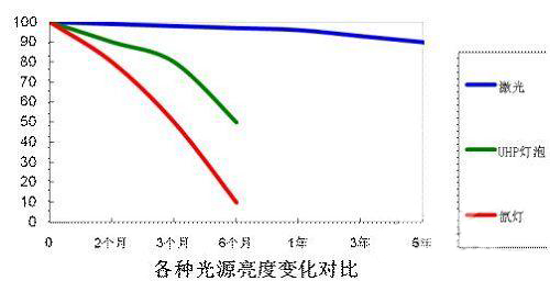 氙燈與激光光源壽命曲線