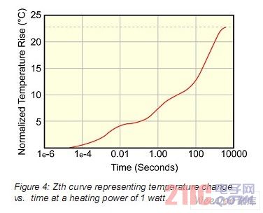 在電子行業(yè),術(shù)語(yǔ)“Z”代表阻抗,在我們的例子中代表熱阻抗。在熱阻抗的曲線(xiàn)中,其表示溫差除以熱功耗的值。因此,圖4中的Z曲線(xiàn)表述了對(duì)于1W熱功耗的溫度改變。