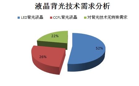 根據(jù)賽迪網(wǎng)對(duì)350位網(wǎng)友所作的調(diào)查顯示,在購(gòu)買(mǎi)顯示器的時(shí)候,考慮LED產(chǎn)品的有182位,占52%。依舊會(huì)考慮CCFL產(chǎn)品的有91位,占26%,而表示不關(guān)心背光技術(shù)的有77位,占22%。而在1年多以前類(lèi)似的調(diào)查當(dāng)中,表示會(huì)選購(gòu)LED產(chǎn)品的用戶比例還不足25%。由此,很多廠商甚至已經(jīng)在產(chǎn)品線上實(shí)現(xiàn)了全部LED化。而隨著LED產(chǎn)品價(jià)格的進(jìn)一步走低,在未來(lái)一到兩年之內(nèi),CCFL產(chǎn)品很有可能會(huì)被完全取代。