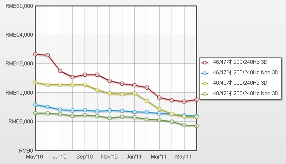 - 大陸品牌46/47寸3D TV均價(jià)最高較外資品牌便宜40%以上