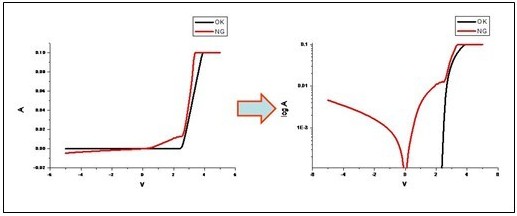 1. 不亮:這種失效是指LED通電后完全不發光。一般而言,導電路徑上的 ”斷路(open)"是本類失效的主因之一,確認斷路的方法也十分簡易,以常見的三用電表就可驗證。不過,要找到斷路點就必須做進一步的解析,例如:可用X-ray來確認打線是否斷線或脫離、用SEM(掃瞄式電子顯微鏡)觀察剖面結構可檢查黏晶部份的缺陷等等。本類失效的第二個主因是 ”短路(short)” ,這是因為電流未確實通過LED chip,而是流經”旁門左道”,故LED燈粒自然不會發光,如:因發生電子遷移導致電極金屬原子的不正常擴散,譬如氧化銦錫(ITO)、銀或是GaN/InGaN二極管中的阻擋層金屬等都可能因機械應力、高電流密度或在腐蝕性的環境發生此類異狀。其它的原因可能是打線偏移、黏晶膠爬膠等等。這種失效必須利用I-V curve(電流-電壓圖)才能判定,至于失效點因為從外觀無法檢查到上述缺陷,故需先以X-ray來確認;或是化學溶液去除LED封裝材料后,再使用光學(OM)或電子顯微鏡(SEM)仔細檢查。