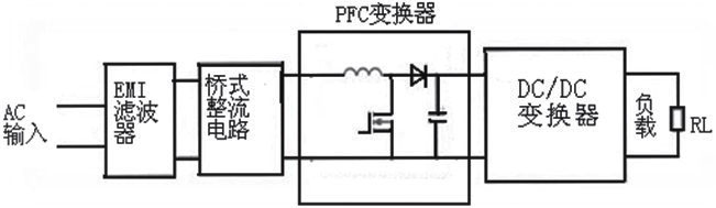 本文所設計電路主要分為EMI模塊、PFC變換器和DC/DC變換器三個部分,其中EMI模塊采用雙環濾波,達到了較理想的效果;采用飛兆FAN6961芯片作為PFC變換器的控制芯片,使用Boost變換,使功率因數得到提高;DC/DC變換器采用LLC諧振,以FSFR2100為控制器件,達到了較高的效率,其基本結構如圖1所示。