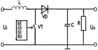 Boost變換器亦稱并聯開關變換器。當驅動控制信號使開關晶體管VT導通時,能量從輸入電源輸入,并存儲于電感L中,二極管VD反偏,負載由濾波電容C供給能量。
