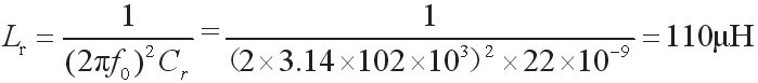 如圖7振蕩器的典型電壓增益曲線所示,選取諧振頻率為102kHz,并且在上一步中已經得出Cr=22nF,將這兩個參數代入式(11)就可以得到: