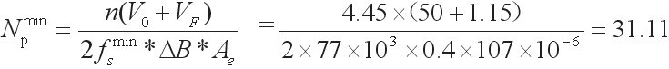 成立,故變壓器的線圈匝數為:初級NP=36Ts,次級Ns=8Ts。