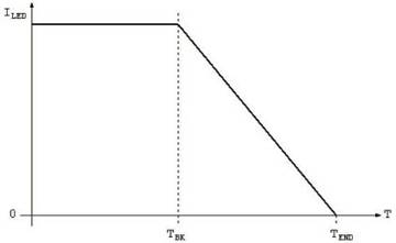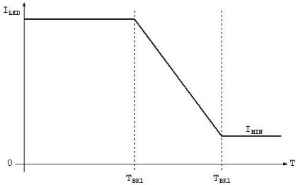 LED制造商通常在數(shù)據(jù)表中包含顯示LED最大允許正向電流和溫度的圖線,以確保部件的可靠性,這也稱為安全工作區(qū)。LED的最大電流額定值在較低溫度測得,但在超出特定溫度后,最大允許電流值降低。由于LED系統(tǒng)的首要設(shè)計要素是適當(dāng)?shù)纳岷屯L(fēng),因此很多應(yīng)用需要考慮不可預(yù)測的狀況,即使最佳的熱設(shè)計也可能無法預(yù)防這些狀況。例如大燈組件被污泥或其他碎屑堵塞的情況。由于對車輛的安全操作至關(guān)重要,因此在此類情況下,需要保持LED在較低操作點正常照明,同時使電流保持在安全工作區(qū),以預(yù)防照明系統(tǒng)的災(zāi)難性故障。