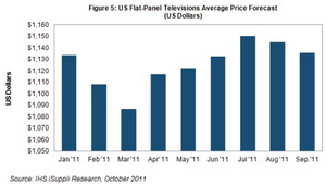 IHS公司預測,電視轉播橄欖球賽季,以及年底假日銷售季促銷活動開始,預計未來幾個月電視價格將會下降,零售商可能出清庫存,準備進貨2012年新款產品。在經濟不景氣之際,美國市場對價格仍然高度敏感,品牌廠商可能極其重視質量和創(chuàng)新,以此來打敗競爭對手。