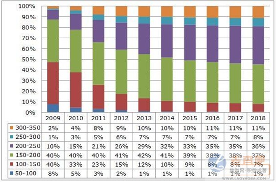 2009–2018年手機顯示屏解析度