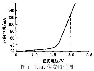 圖1 為LED 正向偏向電壓的伏安特性圖