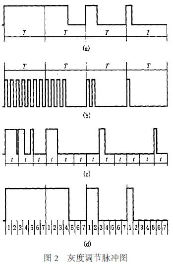 具體來說,如果每一單色像素的灰度級數為N+ 1 ,灰度級由低到高分別為0 ,1 , ..., N ,對每一級灰度規定一串N 位‘0’、‘1’控制碼與其對應,而在每一控制碼中,‘1’的總數與其對應灰度級的編號相等,即灰度級越高,其控制碼中‘1’越多。